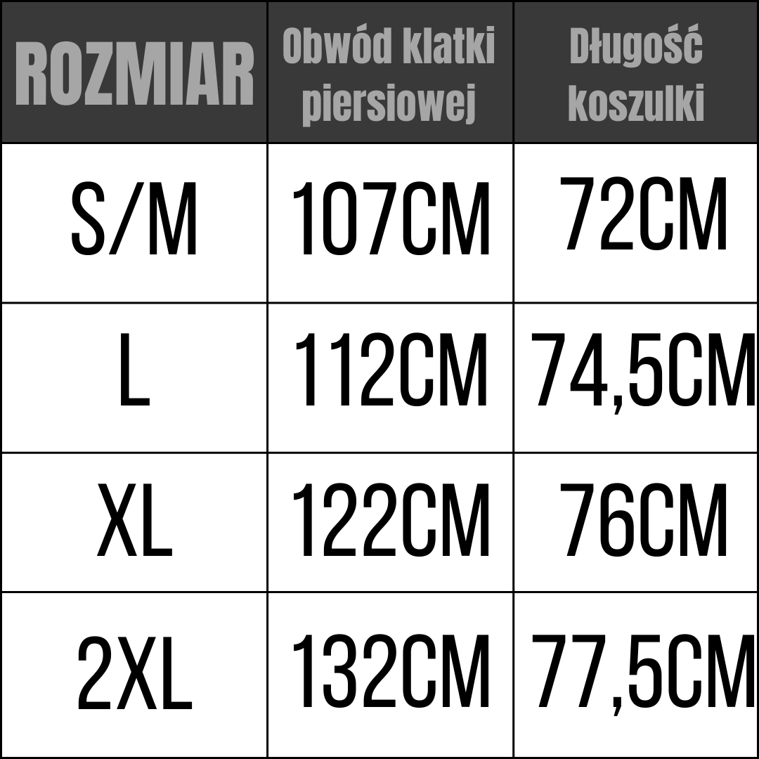 W naszym sklepie oferujemy rozmiary od S do 2XL, zapewniając szeroki zakres dostępnych opcji. Skrolując na dół, trawisz na tabelę z dokładnymi wymiarami.